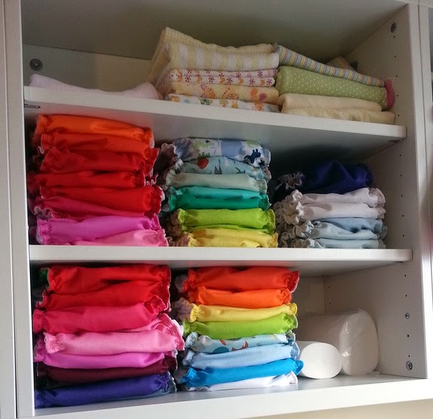 18 diapers in total considering 1 wash cycle got us through the week with ease. As long as I have access to a washing machine were I'm headed, cloth diapering is a no-brainer now. It so so easy.